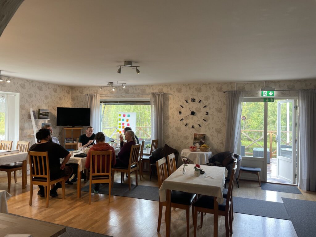 Utöver konferens och bolagsutveckling så ville vi förstås fylla på med mer energi. Vi gick rakt ut i vildmarken kring Orsa Grönklitt, fiskade med guide, gick en runda Frisbee-golf. Ett och annat bastubad. Lagade mat tillsammans – hur skär du potatis egentligen? Och ska verkligen löken grillas på det där sättet?